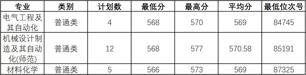 | 甘肃 | 机械设计制造及其自动化 | 本科二批普通类 | 理工 | 411 | 414 | 412.33 |