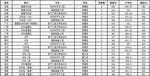 | 省份 | 录取专业 | 录取批次 | 科类 | 最低分 | 最高分 | 平均分 |