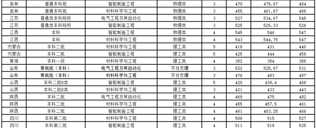 | 内蒙古 | 机械设计制造及其自动化 | 本科二批 | 理科 | 380 | 388 | 384 |