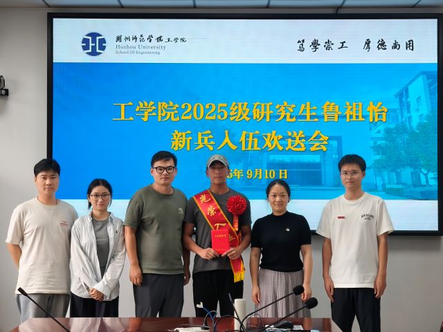 9月10日下午,工学院为2025级研究生新生鲁祖怡同学举行入伍欢送会。会议由学院党委副书记陈莹主持。
