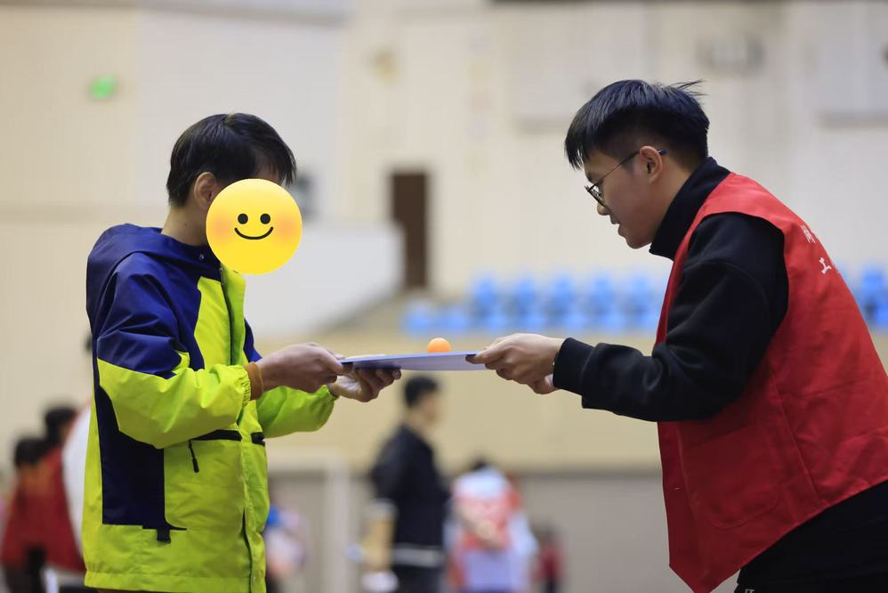 大学生志愿者与福利院儿童开展一对一结对活动,并共同组队参加趣味运动会项目。个人项目“定点保龄球”、“投壶”与“神投手”注重儿童个体能力展示,孩子们在鼓励中踊跃参与;集体项目“飞运乒乓”强调团队协作,传递快乐与友谊;压轴项目“拔河”将气氛推向高潮,展现出“完成即胜利”的参与精神。颁奖仪式上,吕玲玲副院长颁发“阳光全能之星”“活力四射之星”“团结协作之星”“坚韧拼搏之星”等荣誉奖牌,并赠送纪念礼品,孩子们登上领奖台,喜悦之情溢于言表。