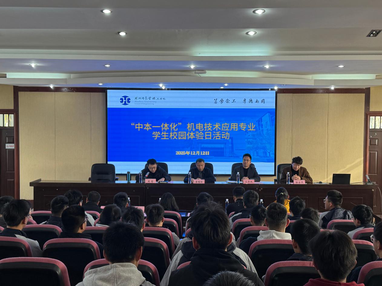 2025年12月12日,湖州师范学院工学院成功举办了"2025年德清县职业中等专业学校中本一体化专业学生校园体验日活动"。德清县职业中等专业学校执行校长沈奇民、教务处处长李云、智能制造系主任陈鸿叔等校方领导、老师,以及2025级学生及家长参与,共同体验了湖州师范学院的校园文化与专业特色。