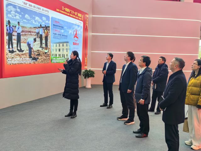 楼建林一行参观了企业展厅。三一装备展现出的坚守实业、深耕制造的发展理念和取得的卓越成绩,让楼建林一行深感敬佩。他高度赞赏三一装备在推动行业进步和地方经济发展中所做出的突出贡献,认为其发展经验值得高校在人才培养和科研创新中借鉴学习。