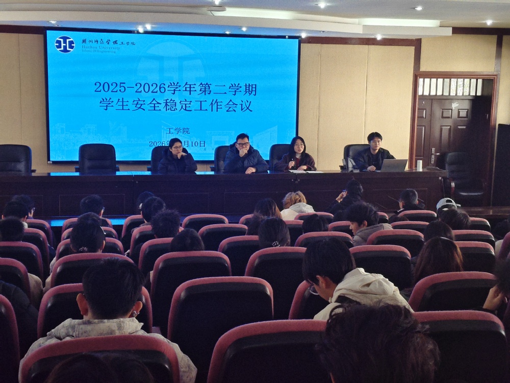 为切实压实新学期学生安全管理责任,筑牢校园安全稳定屏障,2026年3月10日,工学院在104会议室召开新学期安全稳定工作会议。学工办全体辅导员、学院全体保卫委员、寝室长参加会议,会议由辅导员钱明星主持。