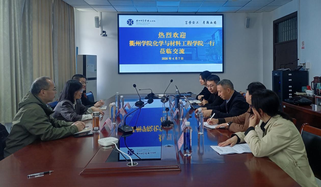 4月7日下午,衢州学院化学与材料工程学院副院长沈晓莉带队,率骨干教师李正辉、王玉林一行来我院开展专题调研交流。本次调研围绕课程思政、现代产业学院、材料与化工专业学位硕士点建设等主题展开座谈。我院唐培松院长、周哲副院长等相关负责人及教师代表参与交流,分享了课程思政案例、人才培养等方面的经验做法,双方还就相关工作难点与发展方向深入探讨,为两院后续合作与发展奠定基础。